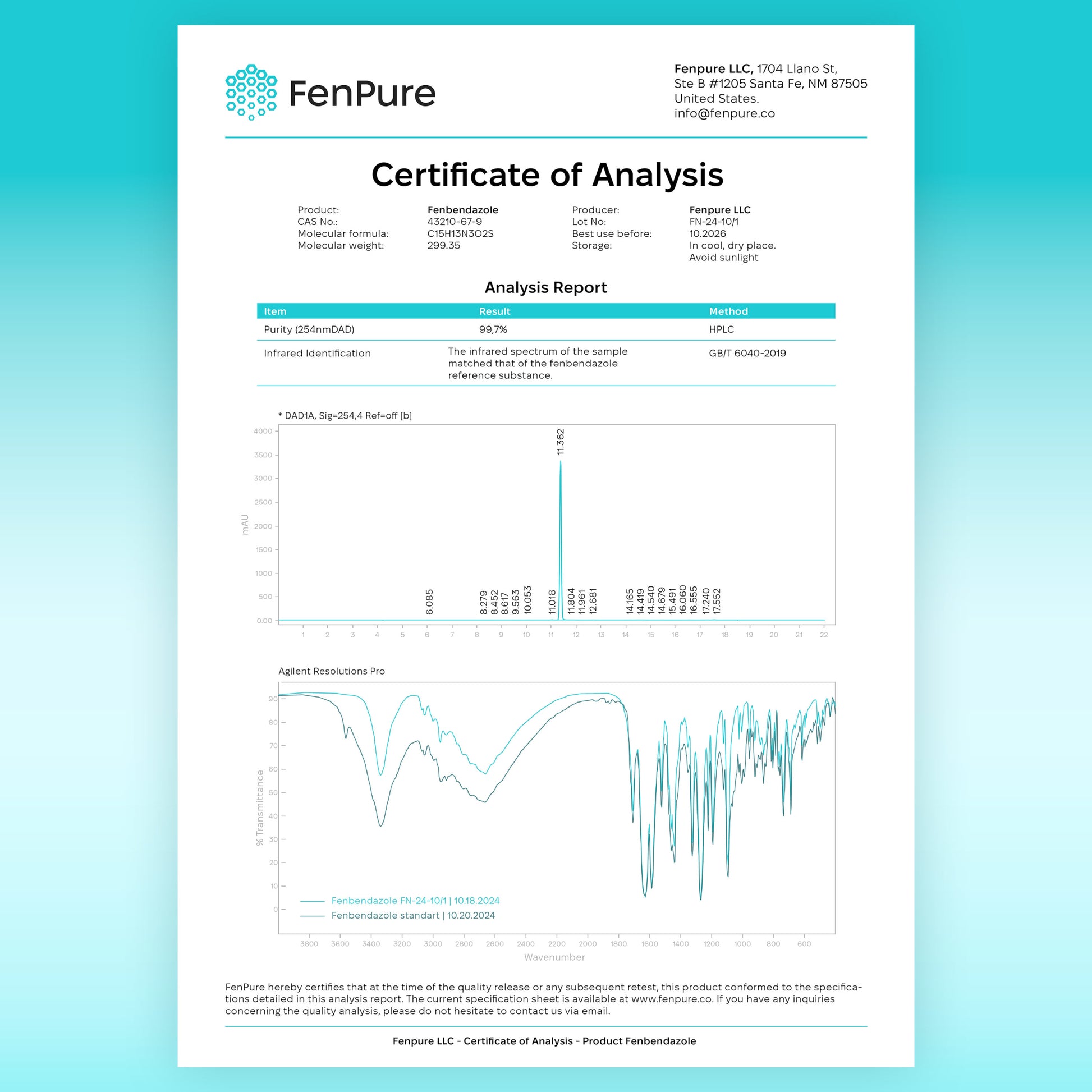 – Each capsule contains 444 mg of Fenbendazole at 99.6% purity with zero fillers